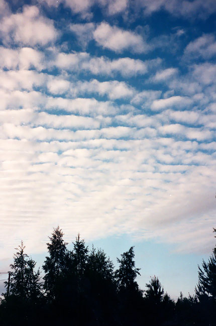 Cirrus clouds: These thin, streaky or wispy clouds sometimes resemble white brush strokes on a blue canvas high in the sky. They may precede the front by as many as 48 hours.